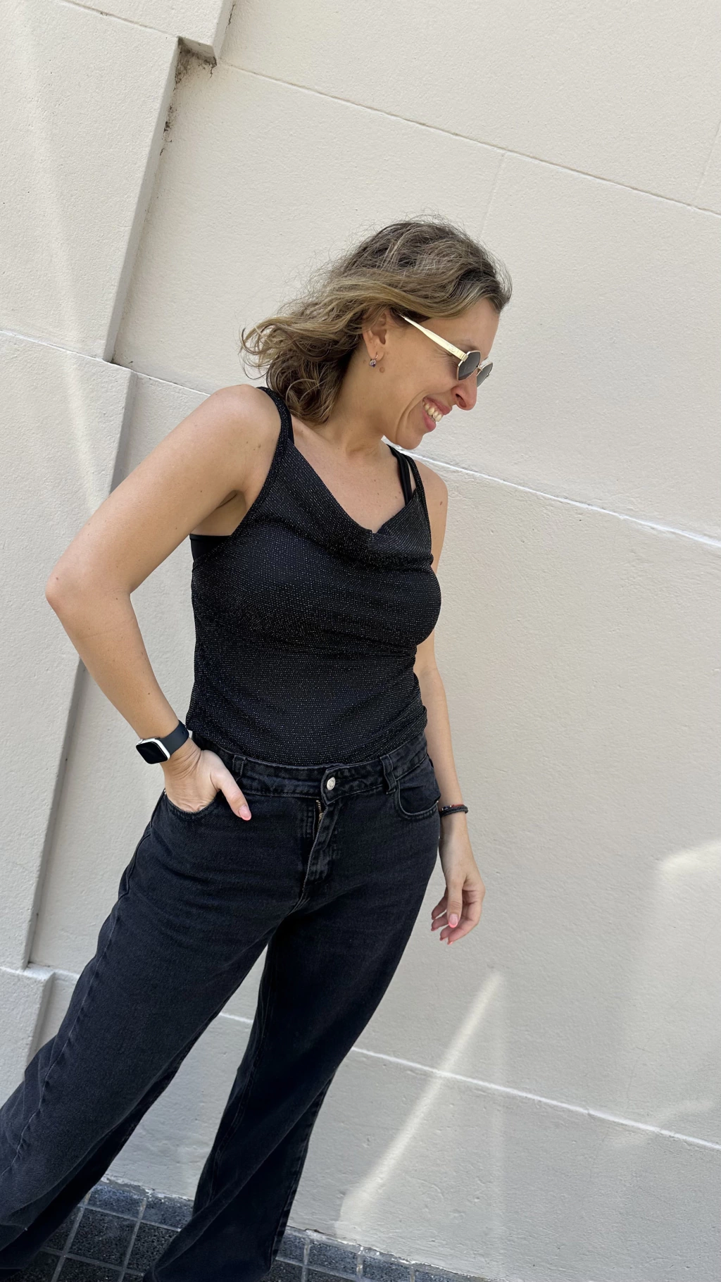 Musculosa lurex con breteles finitos y escote drapeado ✨