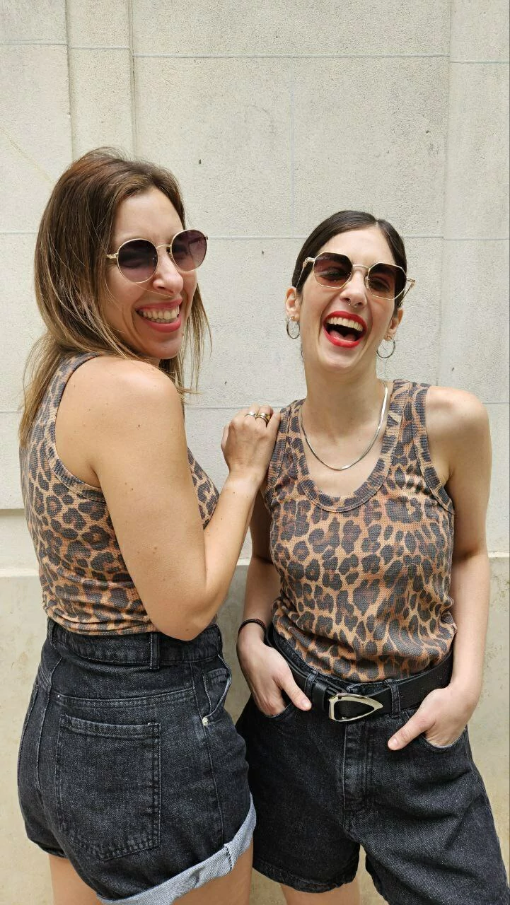 Den (morocha) usa talle 38 y le queda un poco grande, Nat (rubia) usa talle 40